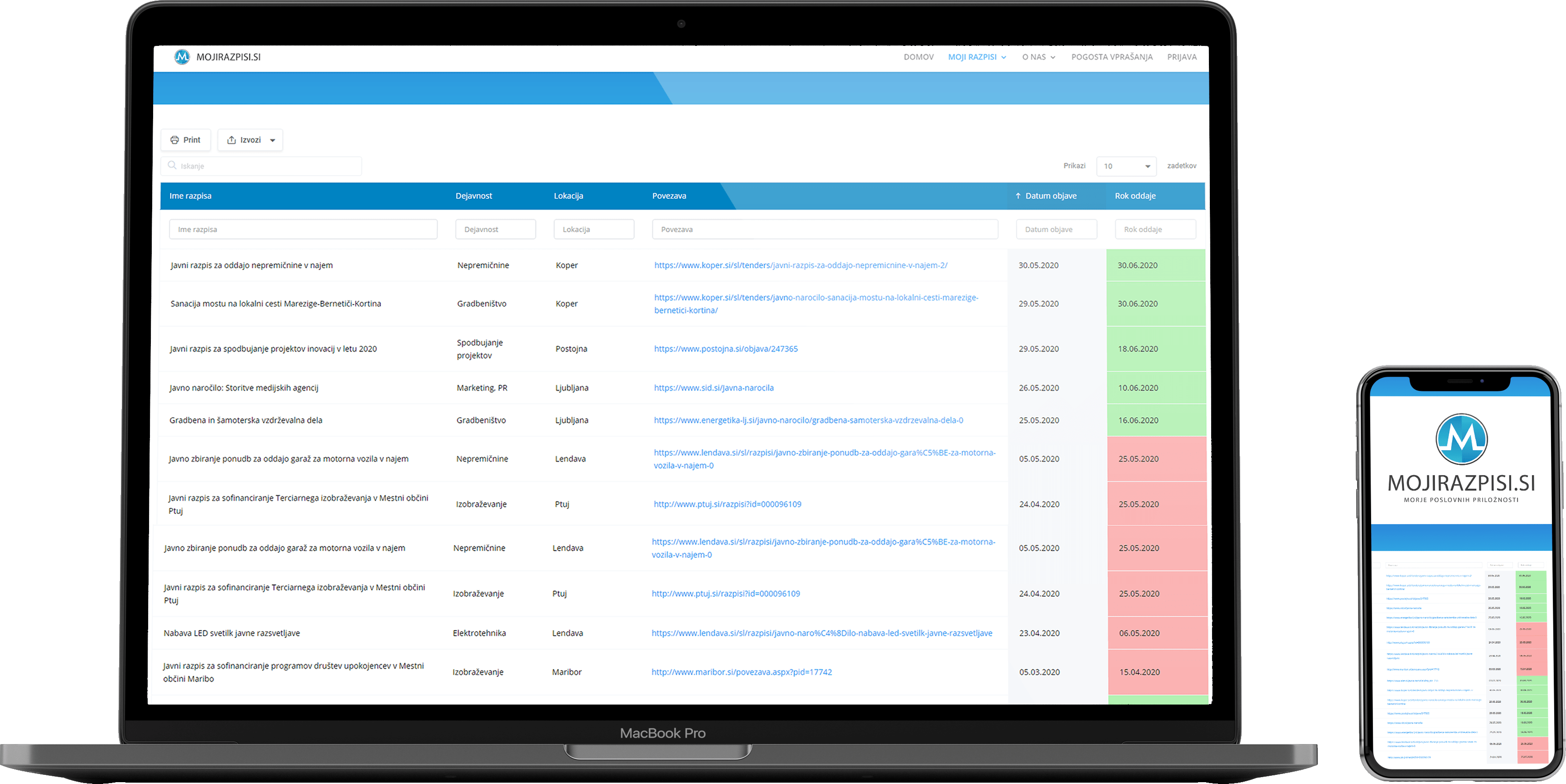 Zberemo in sortiramo vse razpise glede na datum, občino in vrsto razpisa.